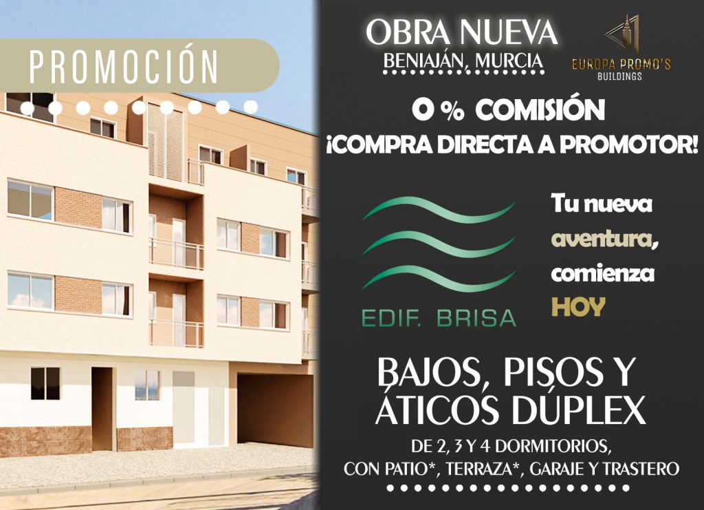 La nueva promoción de viviendas de obra nueva EDIFICIO BRISA, en Beniaján, se ha concebido pensando en el aprovechamiento del espacio, su atractivo diseño, calidad de sus materiales y en el entorno, apostando por una edificación sostenible para una perfecta integración con el ambiente urbano.