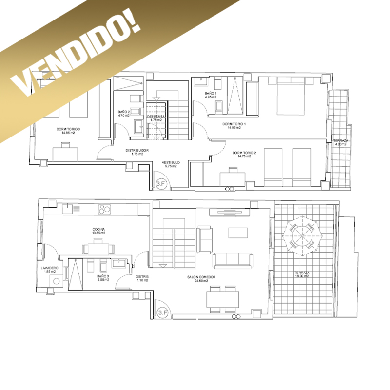 Da comienzo a la nueva aventura de tu vida en este espacioso y luminoso ático-dúplex en planta tercera y cuarta con doble entrada, dotado de las mejores calidades (puerta de entrada acorazada, pintura blanca de textura lisa y mate, preinstalación de aire acondicionado, ventanas con cristales climalit con cámara de 14 mm. de aluminio con rotura de puente térmico para un buen aislamiento térmico y acústico, baños con porcelánicos marmóleos de grandes dimensiones…). Esta maravillosa vivienda de obra nueva de 158,68 m² construidos y 109,25 m² útiles, cuenta con tres habitaciones, tres baños, salón-comedor, cocina, lavadero y una terraza de 20,50 m². INCLUYE GARAJE Y TRASTERO. En la visita se aportará plano con medidas exactas.
